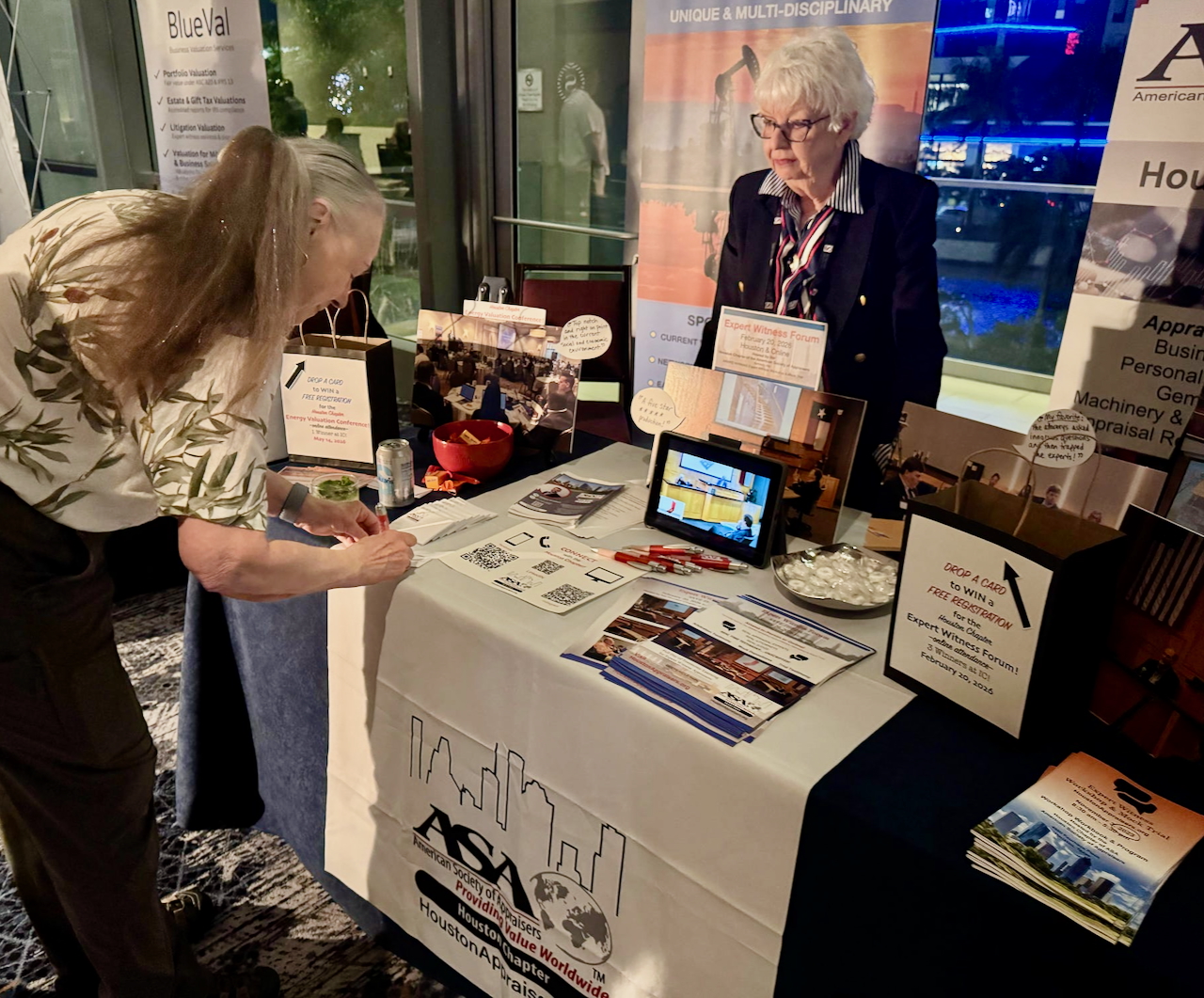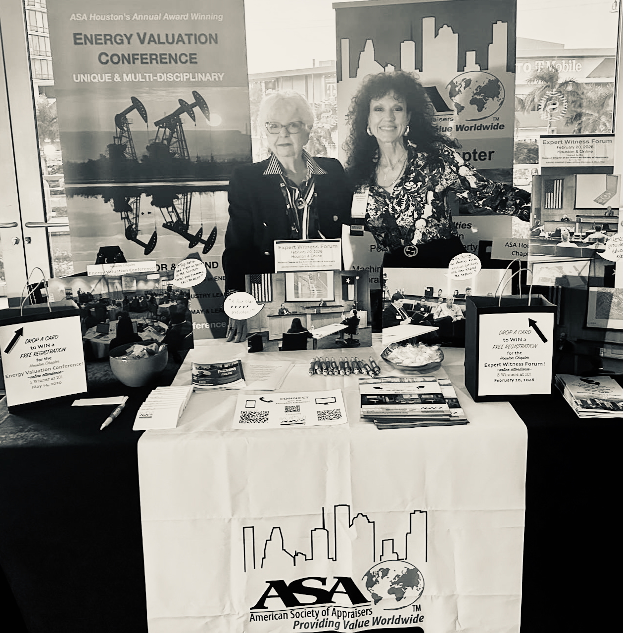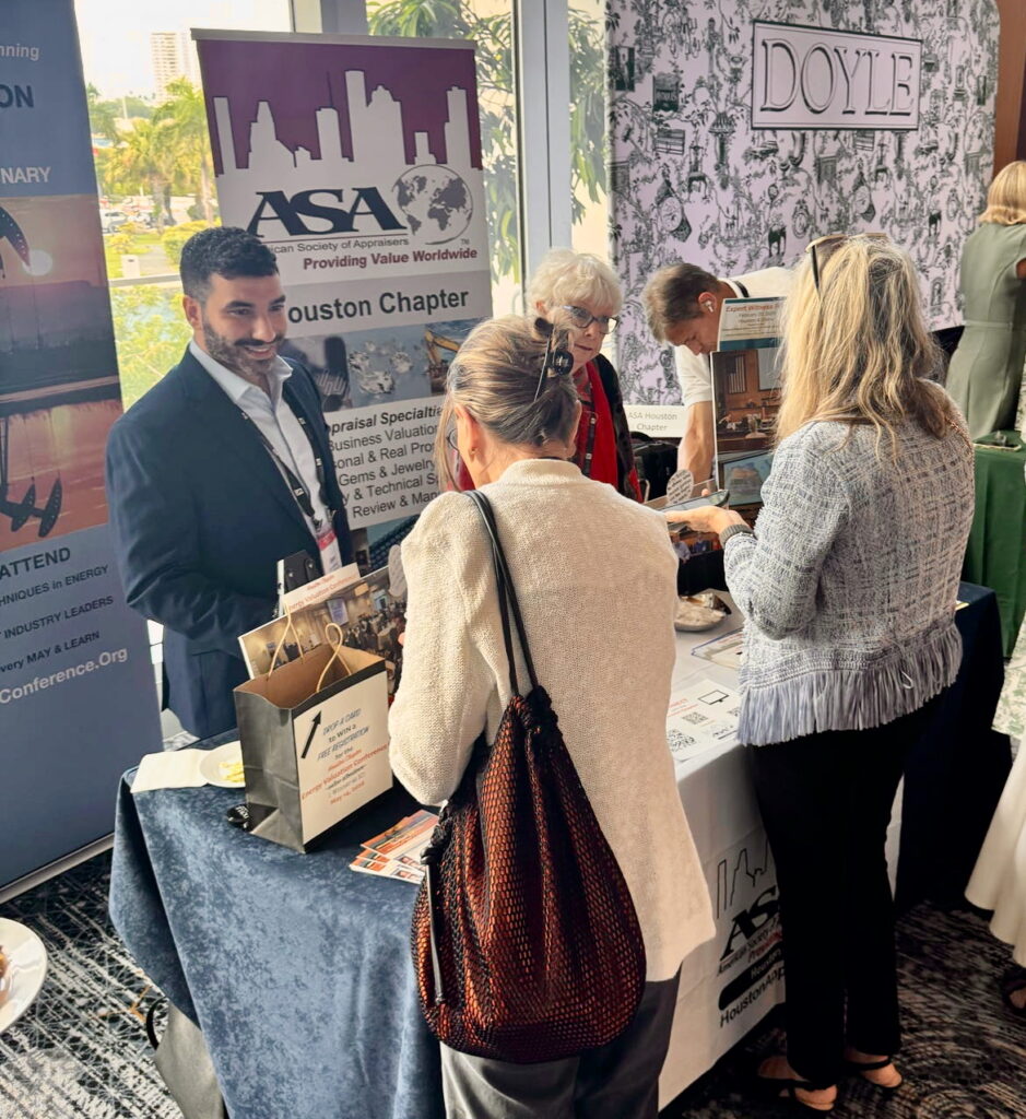 Above from left: ASA International President David Crick, ASA, with Appraisers of the Year award recipients Carol Akers Klug, ASA and Jack Young, ASA, ARM; and Houston Chapter Sponsor booth