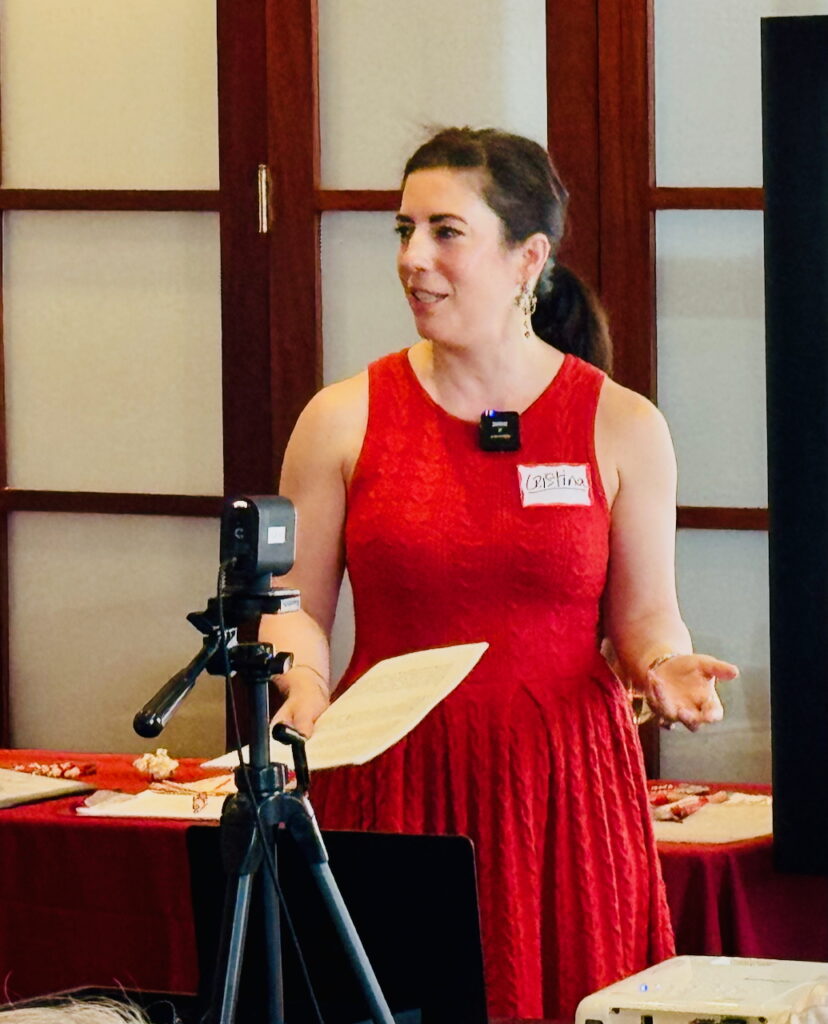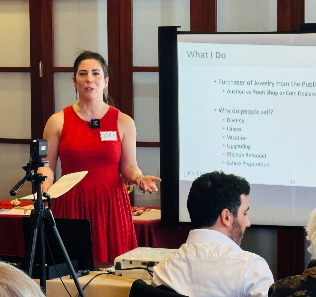 Cristina Mattern presented "Art as Jewelry" on March 3, 2023. She captivated members while passing around high-value Bling for an up-close look.